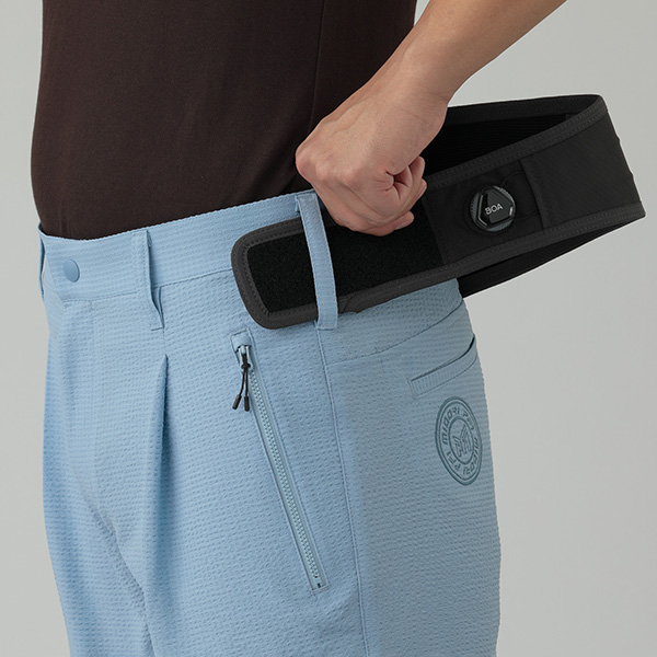 | 特徴 | 【機能】 ●2ウェイストレッチ ●吸水速乾 【商品説明】 軽量でタテヨコに伸びる素材を使用。 吸水速乾性に優れ、凹凸のあるサッカー素材は見た目にも涼し気な印象を与えてくれます。タックが入ることにより腰回りに適度な空間が生まれ空気が通リやすくなり快適な状態を作り出します。BOA(R)システム搭載のベルトは、場面や体調に合わせて締める緩めるが容易で、腹圧を高め腰への負担を軽減します。ベルトは取り外し可能で普通のベルトを通すことも可能です。 【原産国】 VIETNAM |