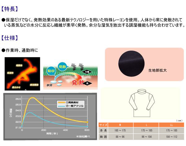 防寒 サーモハイネックシャツ (黒/LLサイズ) WT−212−3の商品詳細画面トップへ戻る